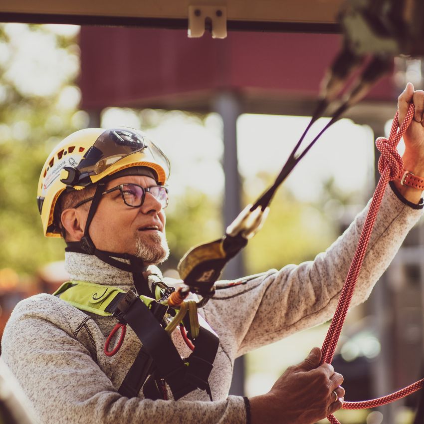 Wir führen für Sie und Ihre Mitarbeiter Basis-und Wiederholungsunterweisungen im Bereich Absturzsicherung und Einfache Rettung ebenso durch, wie Schulungen im Notabseilen aus Hochregalen. Rund um Arbeitsicherheit in Höhen und Tiefen, egal ob auf Dach, Gerüst, Regal, Schacht, Beckenanlagen…, sind wir Ihr kompetenter Ansprechpartner.